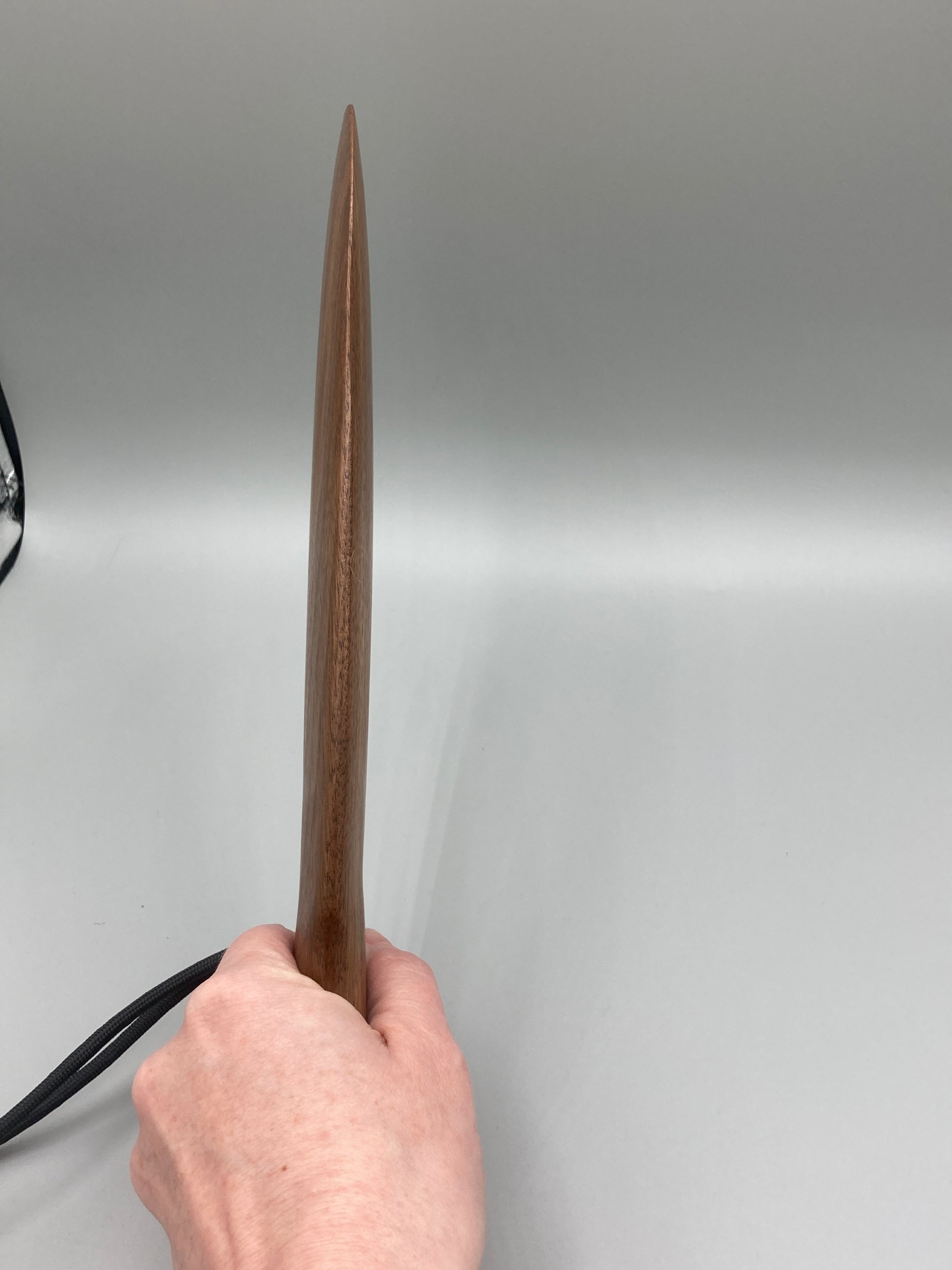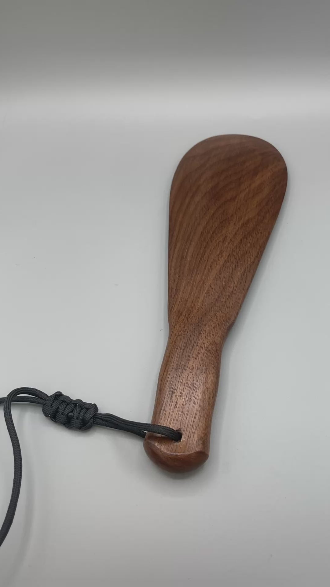 Crafted from beautiful walnut wood with a smooth surface. Comes with a para cord strap.